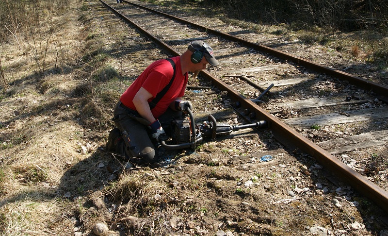Med hjälp av bensindriven mutterdragare går det annars fysiskt ansträngande jobbet med att dra ihop skarvbultar som en dans, och det kan behövas när vi har omkring 40000 skarvbultar på vår järnväg…